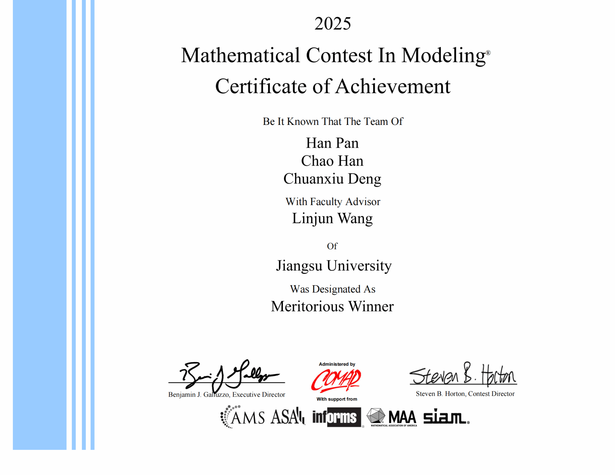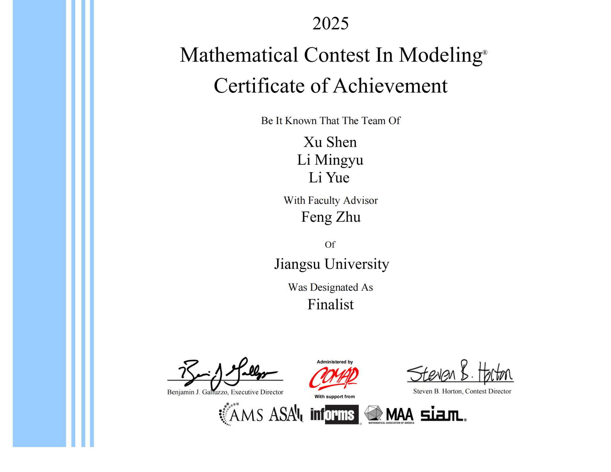 梦溪学子在2025年美国大学生数学建模竞赛中喜获佳绩